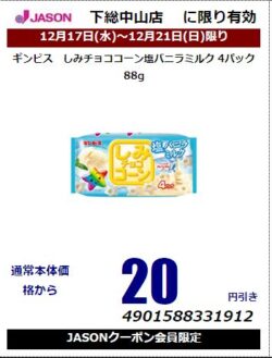 ギンビス しみチョココーン塩バニラミルク 4パック 88g