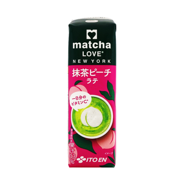 「matcha LOVE NEW YORK」シリーズの三品目となる、抹茶ラテにピーチのフレーバーを加え、「一日分のビタミンC」100mgが入った紙パック容器の飲料製品です。