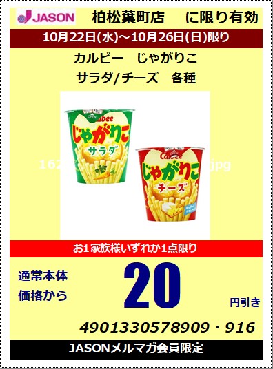 【原材料名】じゃがいも(国産)、植物油、乾燥じゃがいも、チェダーチーズ、チーズソース、ホエイパウダー、粉末植物油脂、食塩、ホワイトペッパー、カマンベールチーズパウダー / 乳化剤(大豆を含む)、調味料(アミノ酸等)、カロチノイド色素、香料、水酸化Ca、酸化防止剤(V.C)
