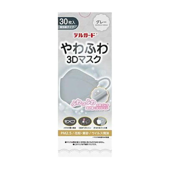 呼吸がしやすく、口紅がマスクにつきにくい口元空間形状でフェイスラインもスッキリ綺麗に。ノーズフィッターが鼻の形にぴったりフィットしメガネの曇りを軽減、長時間使用しても耳が痛くなりにくい「幅広耳ゴム」を採用、携帯に便利な個別包装