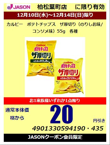 / カルビー ポテトチップス ザ厚切り(のりしお味/コンソメ味)55g 各種お1家族様いずれか1点限りクーポン使用で本体価格から20円引
