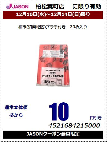 / 柏市(沼南地区)プラ手付き 20枚入りクーポン使用で本体価格から10円引