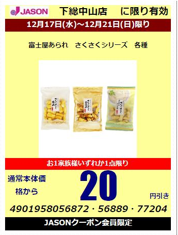 / 富士屋あられ さくさくシリーズ 各種お1家族様いずれか1点限りクーポン使用で本体価格から20円引