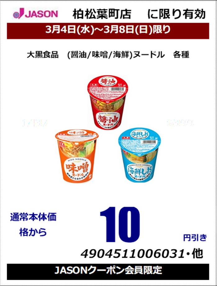 / 大黒食品 (醤油/味噌/海鮮)ヌードル 各種クーポン使用で本体価格から10円引