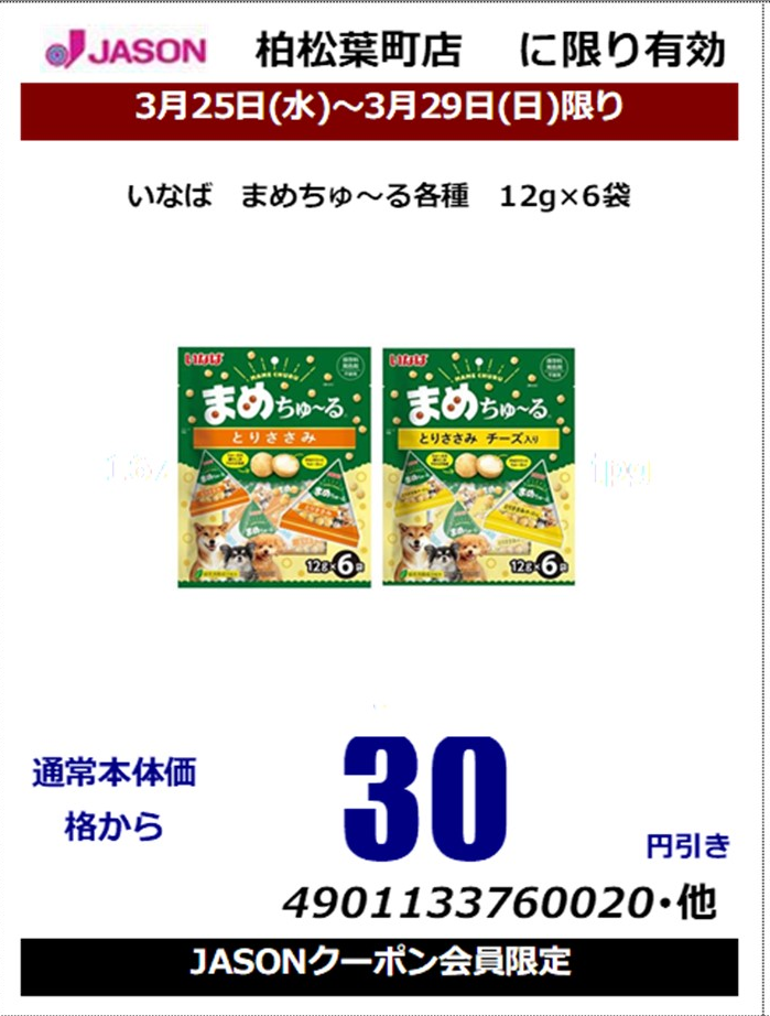 / いなば まめちゅ~る各種 12g×6袋クーポン使用で本体価格から30円引