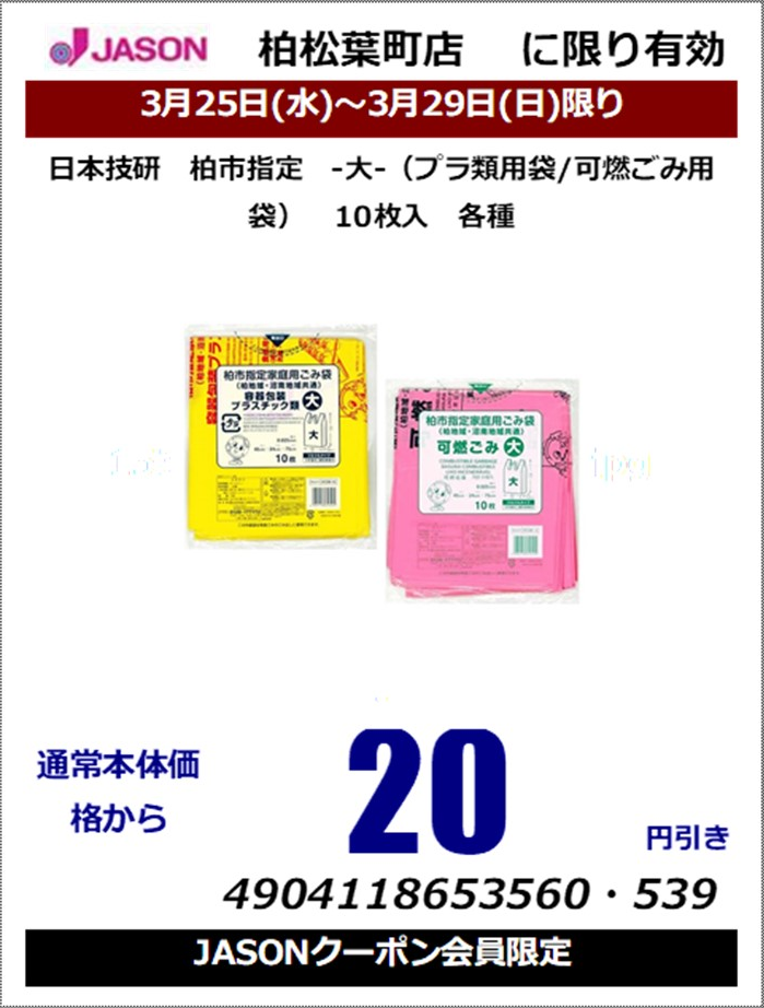 / 日本技研 柏市指定 -大-(プラ類用袋/可燃ごみ用袋) 10枚入 各種クーポン使用で本体価格から20円引